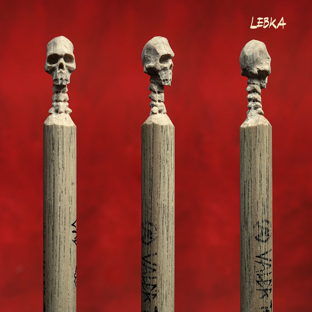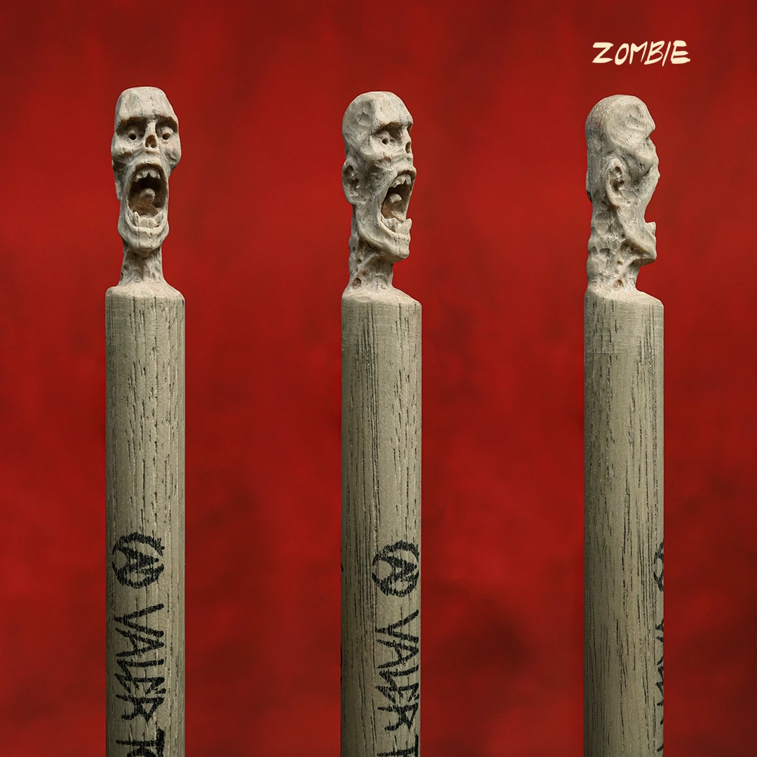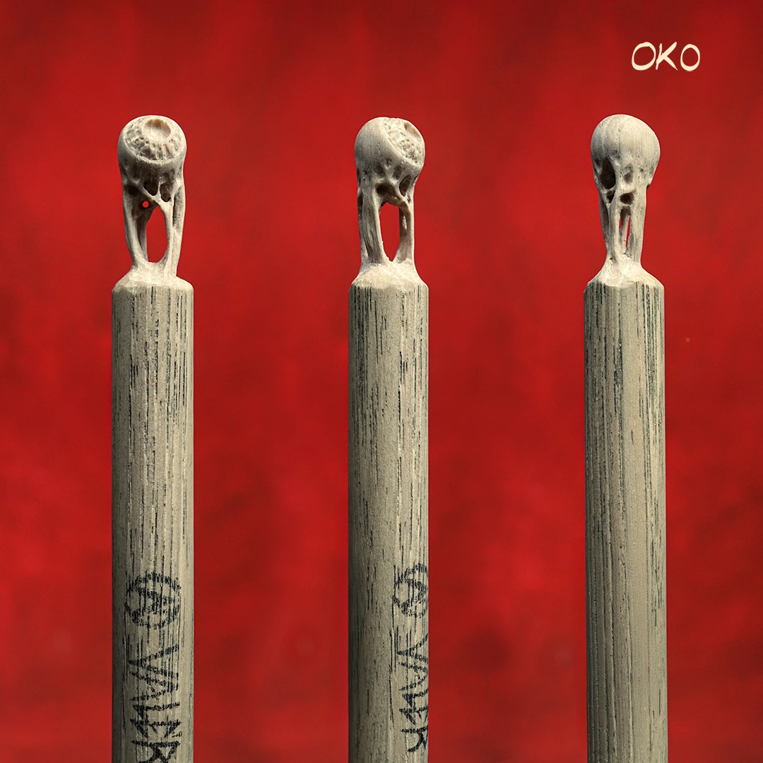 Čau, každá z týchto paličiek je absolútne špeciálny kúsok. Ide o ohrané paličky vyrobené na mieru podľa mojich požiadaviek. A keďže milujem reálne veci, ktoré sa dajú chytiť, do každej z týchto paličiek som vyrezal nejakú kreatúru, príšeru alebo iný objekt. Nebolo to ľahké, lebo paličky sa vyrábajú zo strašne tvrdého a húževnatého dreva, a na detailné tváre sú tenké.