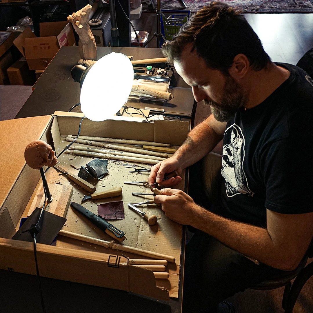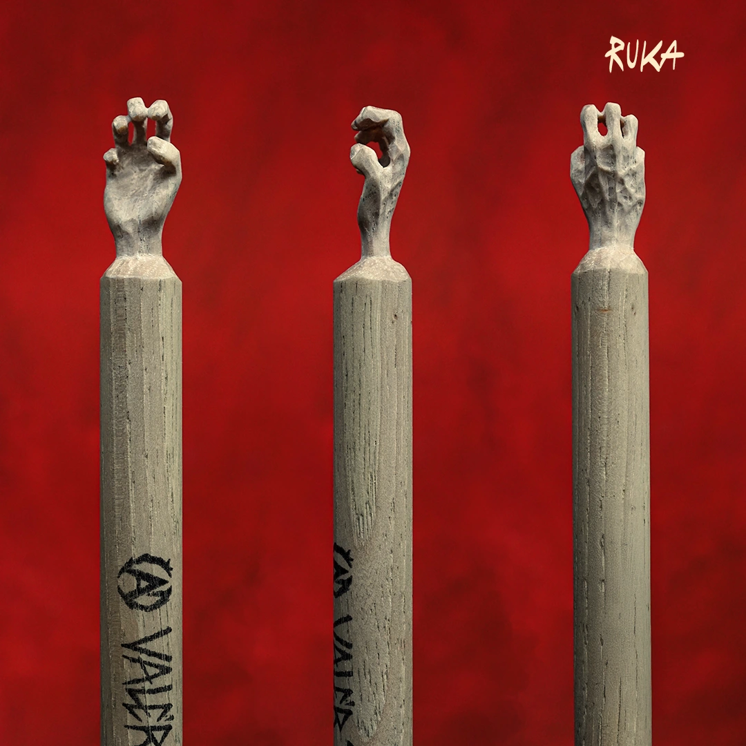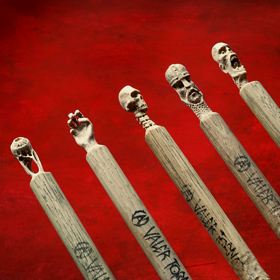 Čau, každá z týchto paličiek je absolútne špeciálny kúsok. Ide o ohrané paličky vyrobené na mieru podľa mojich požiadaviek. A keďže milujem reálne veci, ktoré sa dajú chytiť, do každej z týchto paličiek som vyrezal nejakú kreatúru, príšeru alebo iný objekt. Nebolo to ľahké, lebo paličky sa vyrábajú zo strašne tvrdého a húževnatého dreva, a na detailné tváre sú tenké.